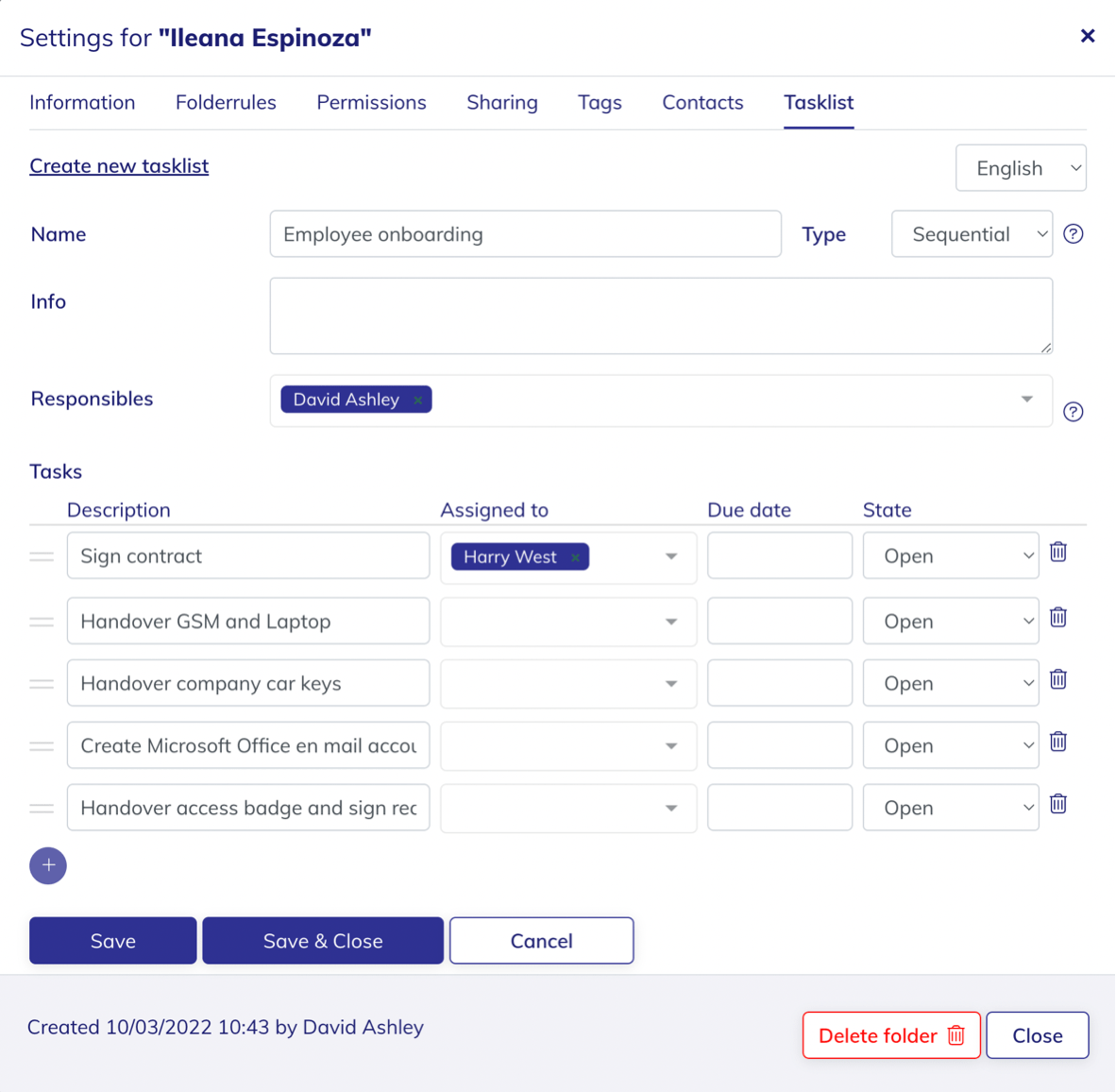 - Assign (optional) a task to an employee.
